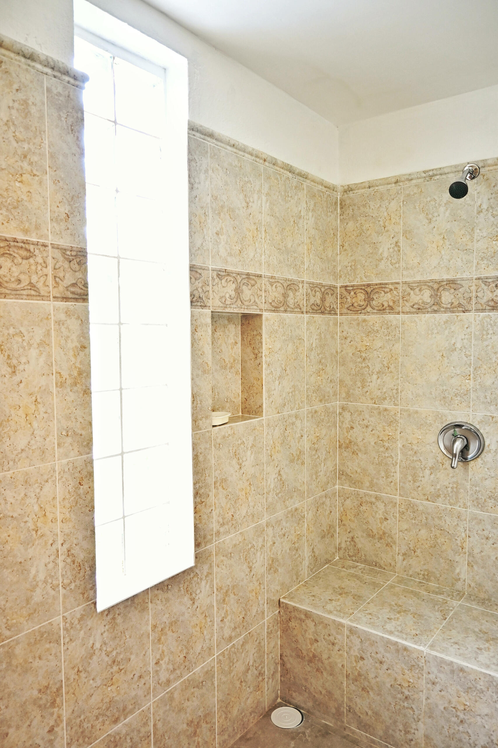 With an abundance of natural light, the ensuite provides dual Talavera sinks & accents, and an oversized shower with a bench.