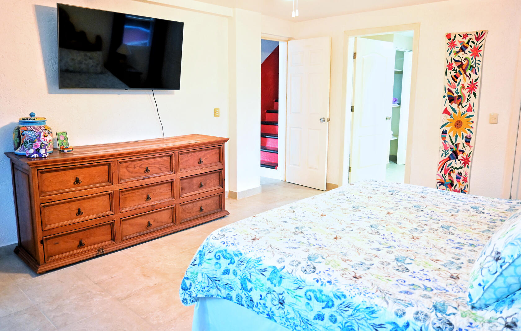 Bedroom 5, the only bedroom on the upper level, is The Villa’s paradise principal suite.