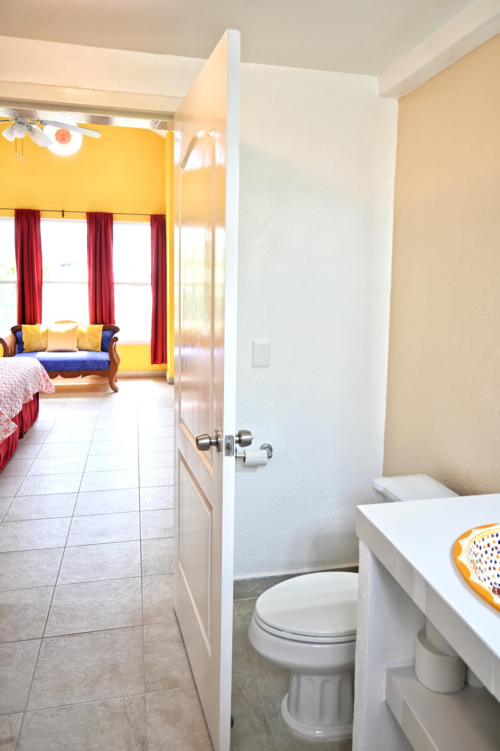 Fitted with a cozy queen bed and the only bathtub in The Villa, this bedroom promises peace & restoration any time of day or night.